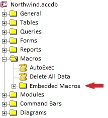 All your Embedded Macros can now be seen in one place. Scattered across form and report properties and control events, it is difficult to see all the automation code in a database. The Embedded Macros folder consolidates this under Macros:
